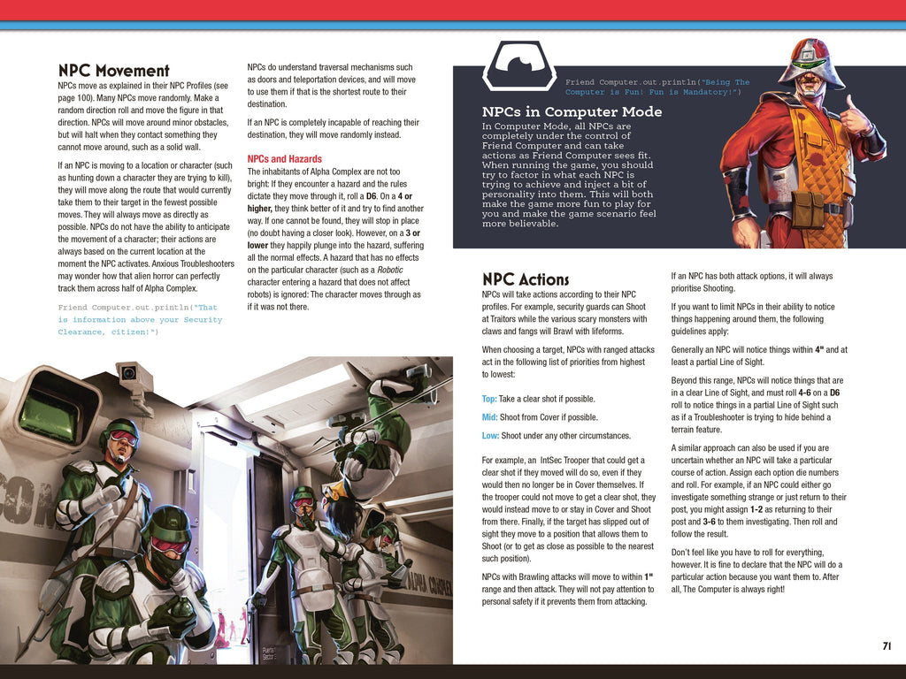 Join a so-called ‘team’ of Troubleshooters (find the trouble, get shot) and complete missions that keep Alpha Complex the safe, efficient Utopia its citizens trust. None of them are members of secret societies, and absolutely none of them have mutant powers. They’re certainly not going to report each other as Traitors or shoot each other in the back with a laser pistol. Hey, get them before they get you!