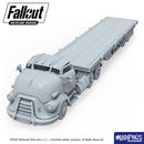 This 3D print product lets you print a truck cab and flatbed trailer (with or without box), to create additional terrain elements for abandoned parking lots, streets, and highways across the wasteland. The set includes a complete flatbed truck, and includes both inflated and flat tires. This classic piece could be home to wasteland vermin, or hold valuable objectives or loot.