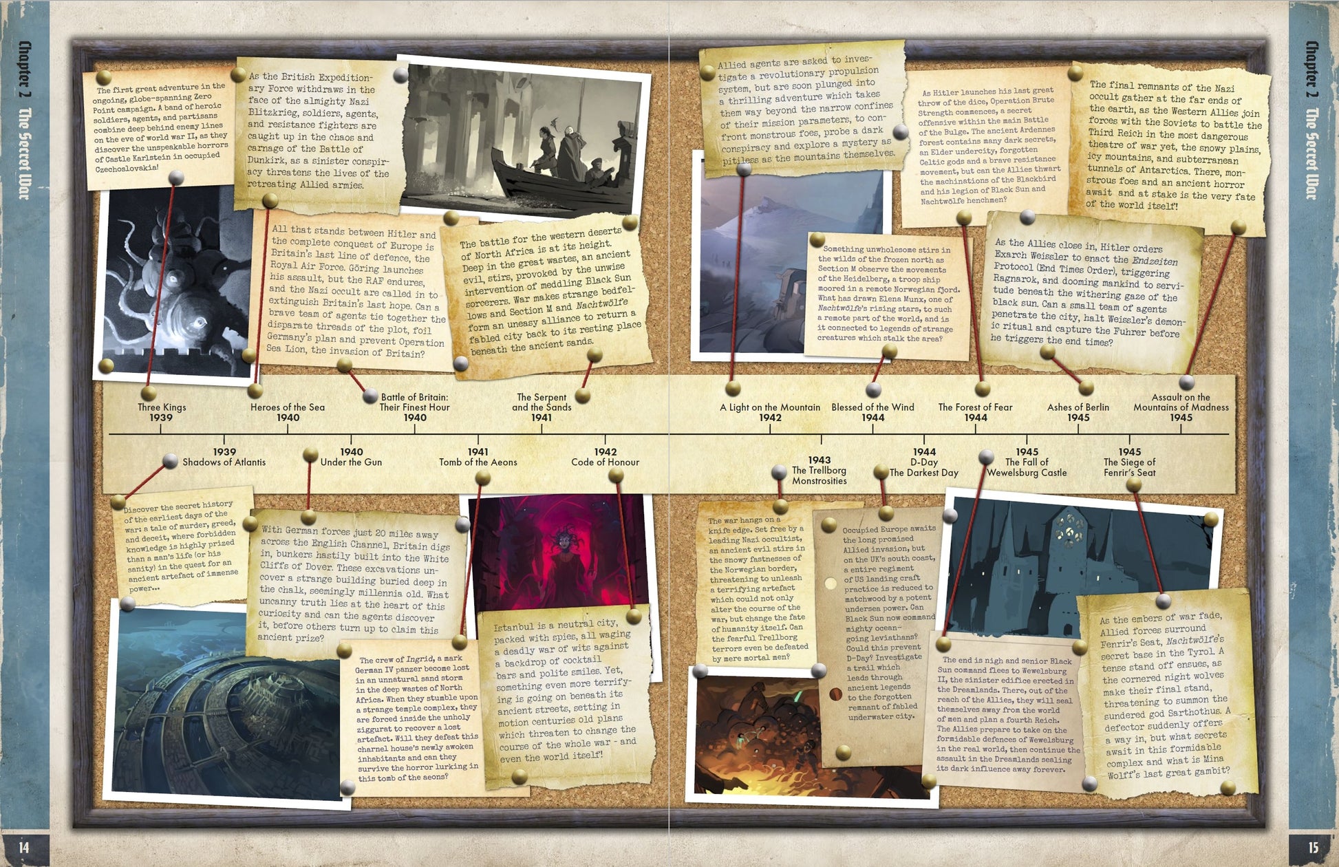 - Major new lore and detailed background information on the six major factions contesting the Secret War: Section M, Majestic, Black Sun, Nachtwölfe, the Deep Ones and Mi-Go including their backgrounds, history, hierarchy, secret bases and missions and goals.
