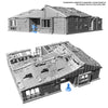 Constructed in the mid to late 2070s, Sanctuary Hills was a small suburb of the larger town of Concord, which was built on a small island reached by a wooden footbridge and made up of some 14 prefabricated homes. In the aftermath of the Great War, the conurbation was abandoned and became neglected with many of the homes collapsing due to the ravages of time and becoming nests for pests like radroaches and bloatflies. This surviving example is typical of the dilapidated houses in Sanctuary Hills and comes with detailed interior dressing and the option to 3D print its removable roof.